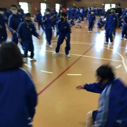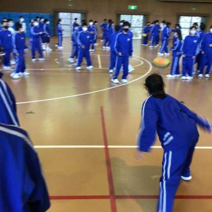 5つの学級が総当たりで、ドッチビーを楽しんでいます。