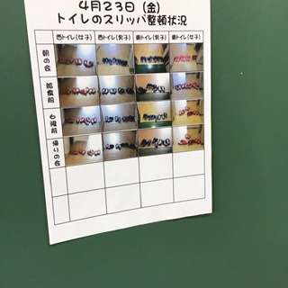 トイレのスリッパの写真が掲示されている学級がありました。