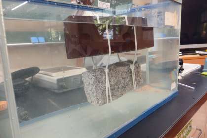 浮力の実験中です。