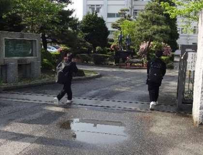 生徒の登校の様子を見ていると、二人組で登校する姿が比較的多いです。