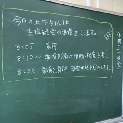 5月14日に予定されている生徒総会の要項を読み込み、質問を考えていました。