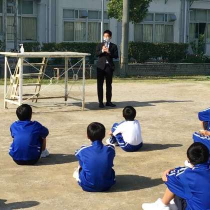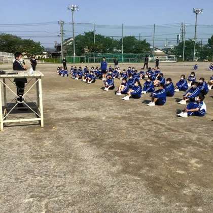 練習の最後に、3月末で転出した先生が突然登場し、生徒たちに激励の言葉を贈ってくれました。
