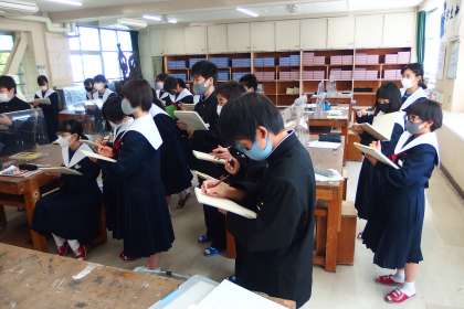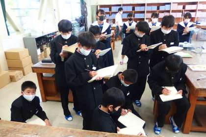 1年生の美術の授業です。 5分間クロッキー画を行っていました。
