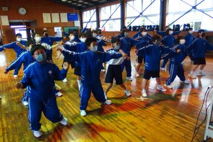 体育祭に向けてダンスの振り付け練習をする1年生です。