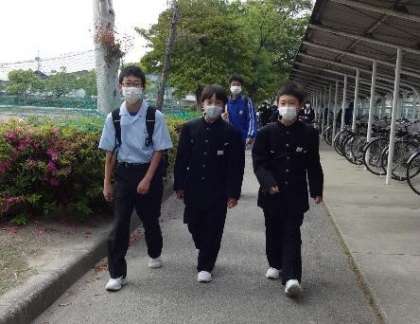 マスク登校を続けましょう 〜今日の登校風景2〜