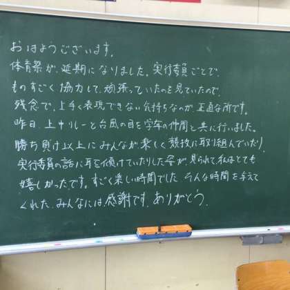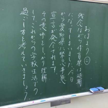 いつものように教室を回っていると、体育祭の延期を残念に思う先生のメッセージが、いくつもありました。