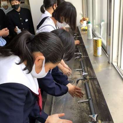 手洗いに手指の消毒、もちろんマスクは着けたまま。
