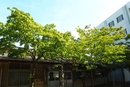 4月に美しい白と赤の花を咲かせていたハナミズキは
