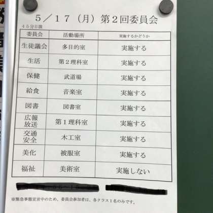 今日の委員会活動について 〜必要最小限で実施します〜