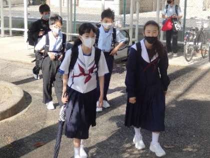 写真は、西門へ向かう途中に出会った生徒たちの一部です。