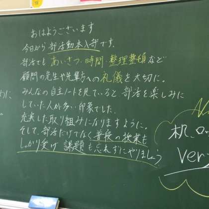 今日から1年生は正式入部です 〜1年生の黒板メッセージから〜
