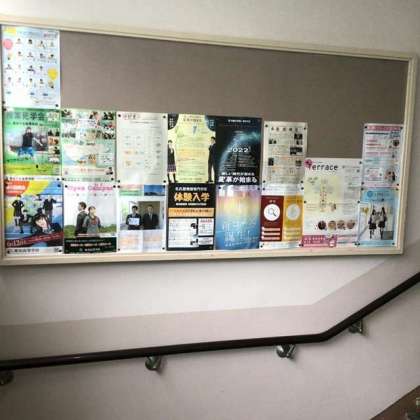 進路指導担当の先生が、3年生が必ず通る階段の踊り場の進路コーナーに掲示してくれています。