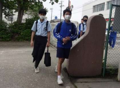 「密」を避けるために、登校開始時刻を15分程度早め、30分程度の登校時間枠を設けていますが、ちょうどその時間枠の真ん中あたりは、生徒が集中しがちで、混雑は否めません。