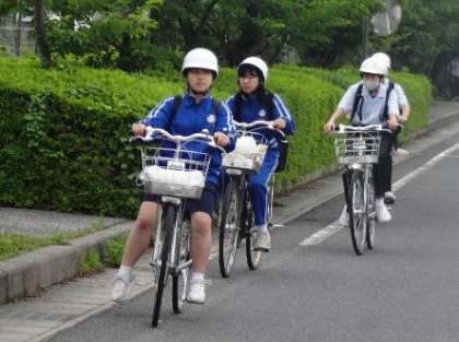 自転車通学者の様子を見ていると、学校周辺では一列で走行している生徒が多いように感じます。