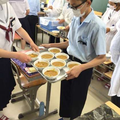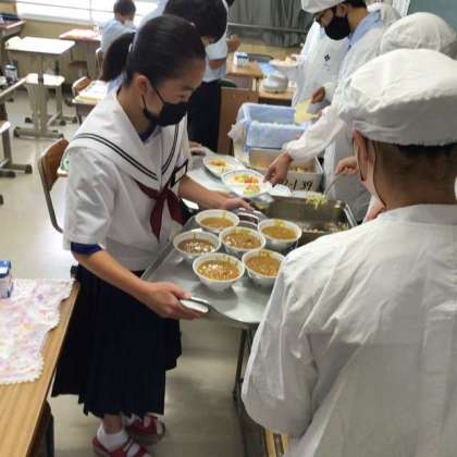 2年生の配膳の様子です 〜今日の給食 その1〜