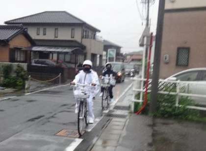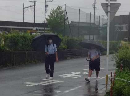 強い雨の中での登校になりました 〜今日の登校風景1〜