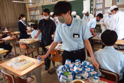 たくさんの牛乳を軽々ともって配っていました。