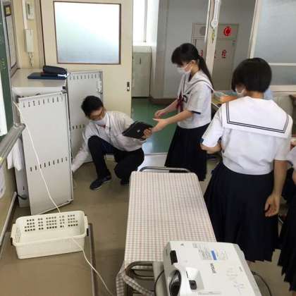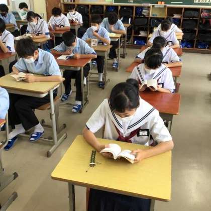 読書に集中している学級と、担任の先生が一人一人にタブレットを手渡している学級がありました。