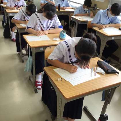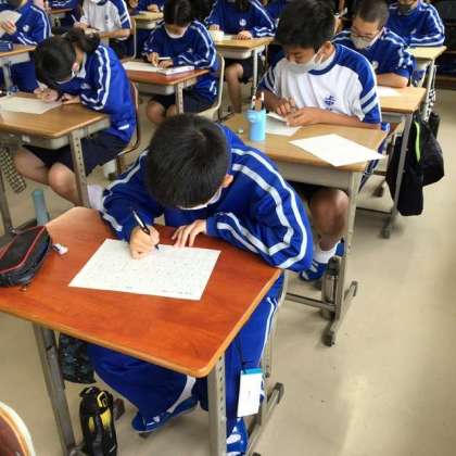 2年生の教室では、漢字の練習をしている生徒の姿がありました。