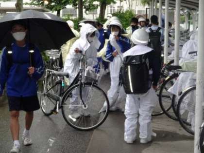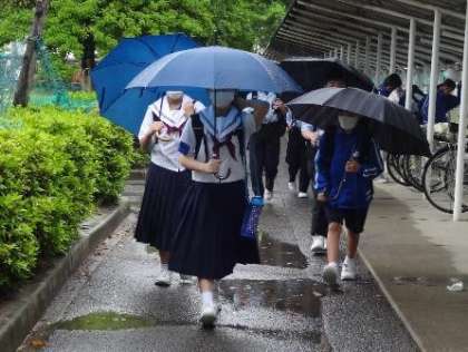 半袖の夏服で登校する生徒が、圧倒的に多くなっています。