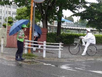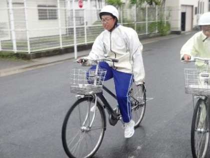 カッパを着ての自転車通学は大変です 〜今日の登校風景3〜