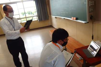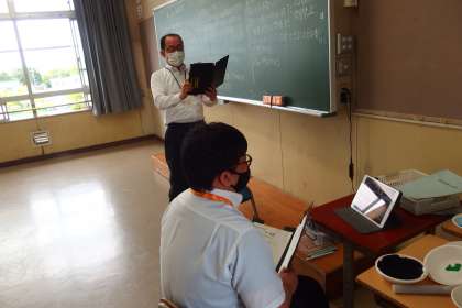 オンライン朝の会をリモートで行っている担任の先生の様子を