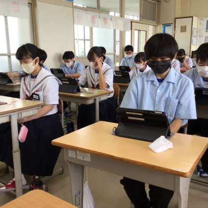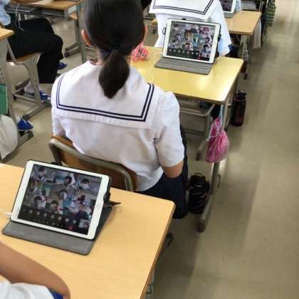 今日は各学年の4組が、オンライン朝の会に挑戦しました。