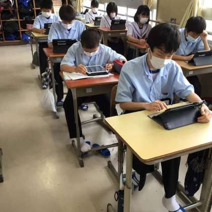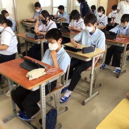 自分の顔が映るのを、恥ずかしがっている生徒もいました。