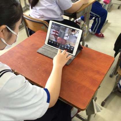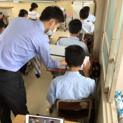 担任の先生がていねいに接続方法を教えていました。