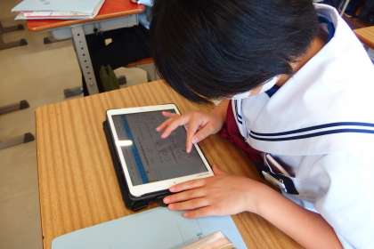 きちんとタブレット上に記入しています。
