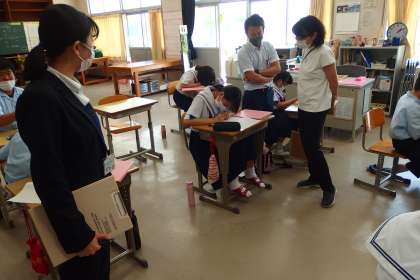授業を参観する教育実習生です。