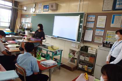 3年生の理科の授業です。 右端に写っているのは教育実習生です。