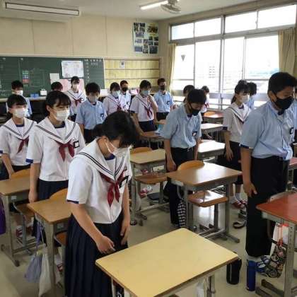 朝の会でも、司会の生徒が、「今から朝の会を始めます」、「気をつけ、礼!」の号令で、全員が礼をして始まります。
