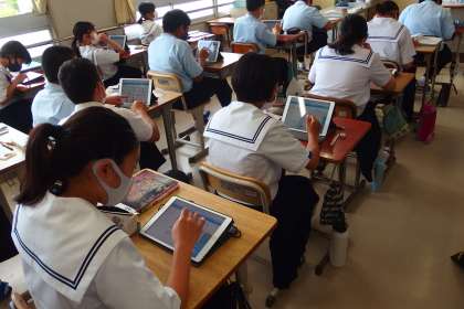 2人の生徒のタブレット画面は対照的で