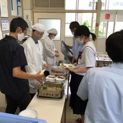 毎日、各学年順番に給食の準備の様子を見て回っています。