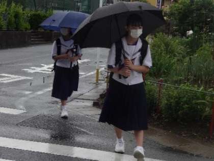 雨の中 頑張って登校しました 〜今日の登校風景1〜