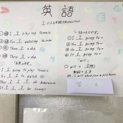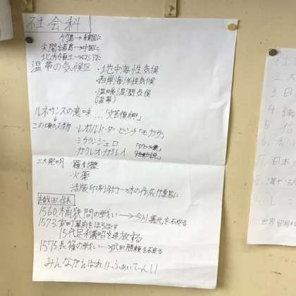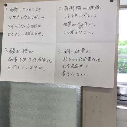 2年生のある教室には、生徒が手作りした予想問題が掲示してあります。