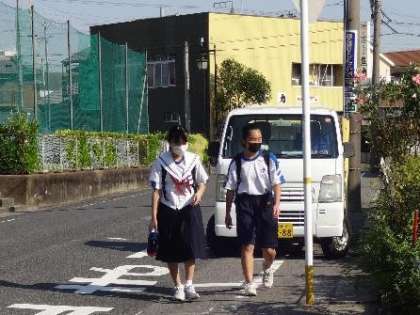 いつも同じ時間に立っているので、登校してくる生徒たちも、通り過ぎる車も人も、だいたい一緒です。