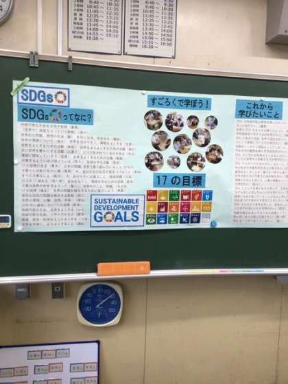 SDGsに関する掲示物が出来上がっていました 〜今日の黒板より〜