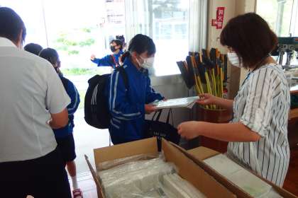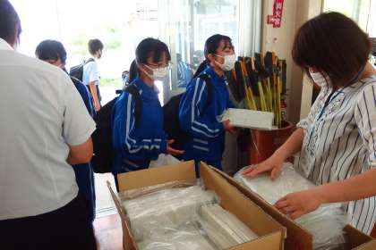 畝部小学校を卒業した1年生が受け取りました。
