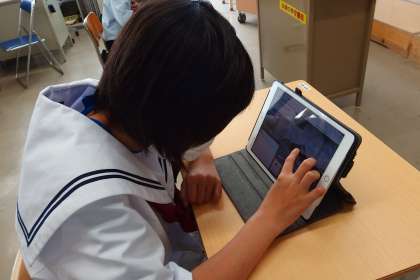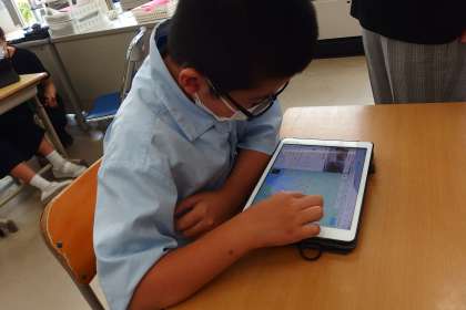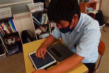 タブレットを使ってテストを受験しています。