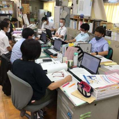 昨日6月14日(月)の生徒下校後に行った職員会議の様子です。