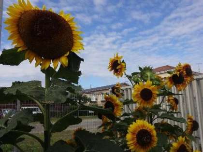 西門を出たところにある郵便局には、ひまわりがきれいに咲いています。