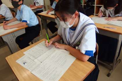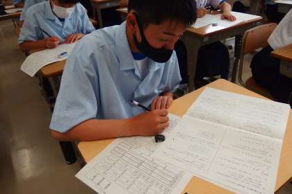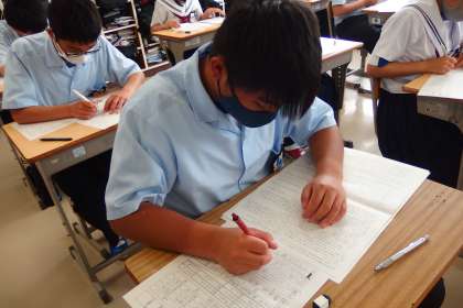 前期中間テスト2日目、 テストに真剣に向かう3年生です。