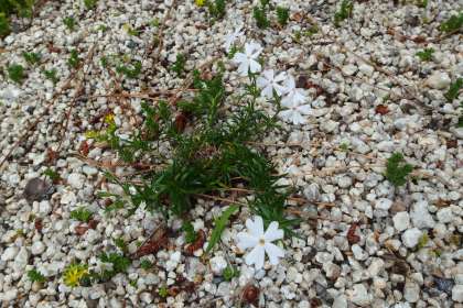正門の横で咲く時期を間違えてしまった芝桜です。