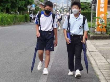 登校するほとんどの生徒の手に、大きめの傘がありました。