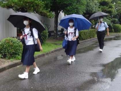 雨は午前中がピークという予報なので、生徒が下校する頃には、雨も収まっているのではないかと思います。