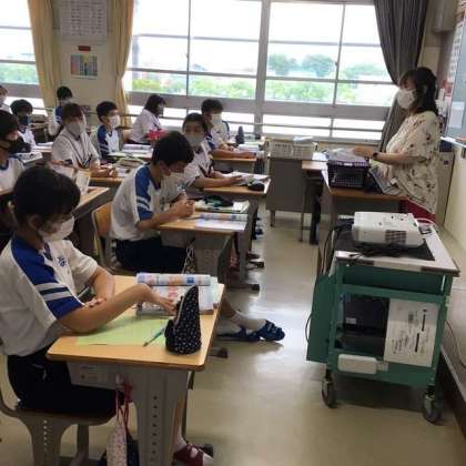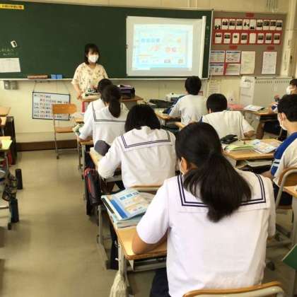 エアコンが入った教室で、タブレットやプロジェクターなどの機器を活用して進められている授業がほとんどです。