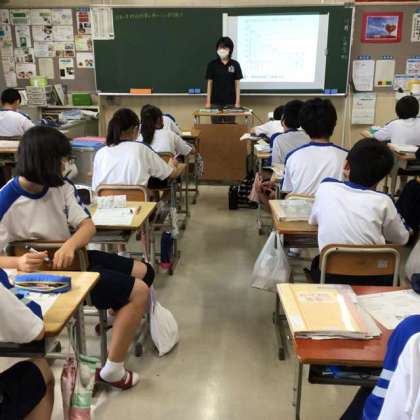 家庭科の授業では、資料の映像が映し出され、