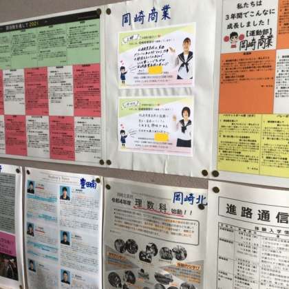 進路指導主事の先生が、高校や専修学校などから送られてくるチラシなどを掲示しています。